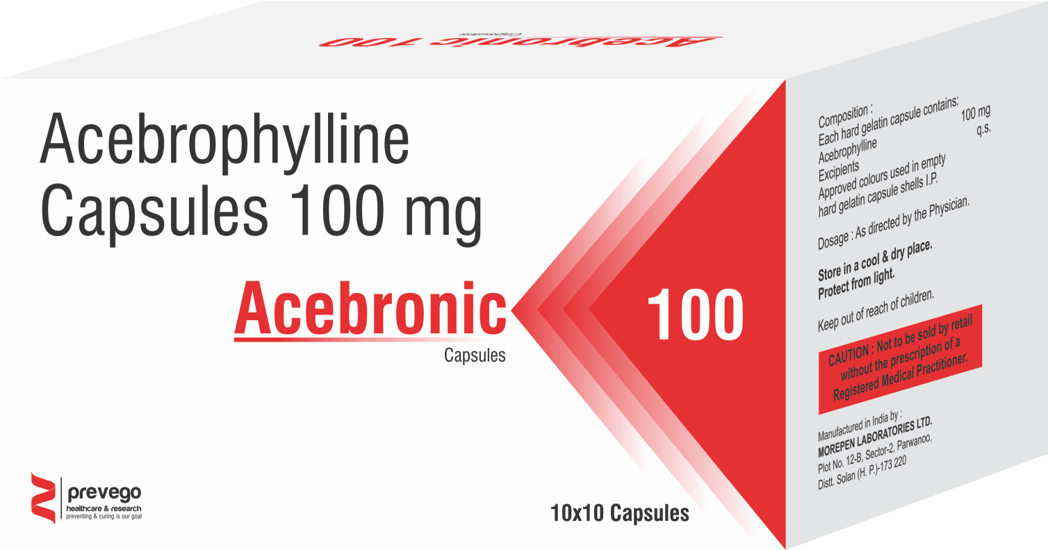 ACEBRONIC 100 Capsule is used to treat and prevent symptoms of asthma and chronic obstructive pulmonary disorder (a lung disorder in which flow of air to the lung is blocked). It helps in relaxing the muscles of the air passages, thus widening it and making it easier to breathe.