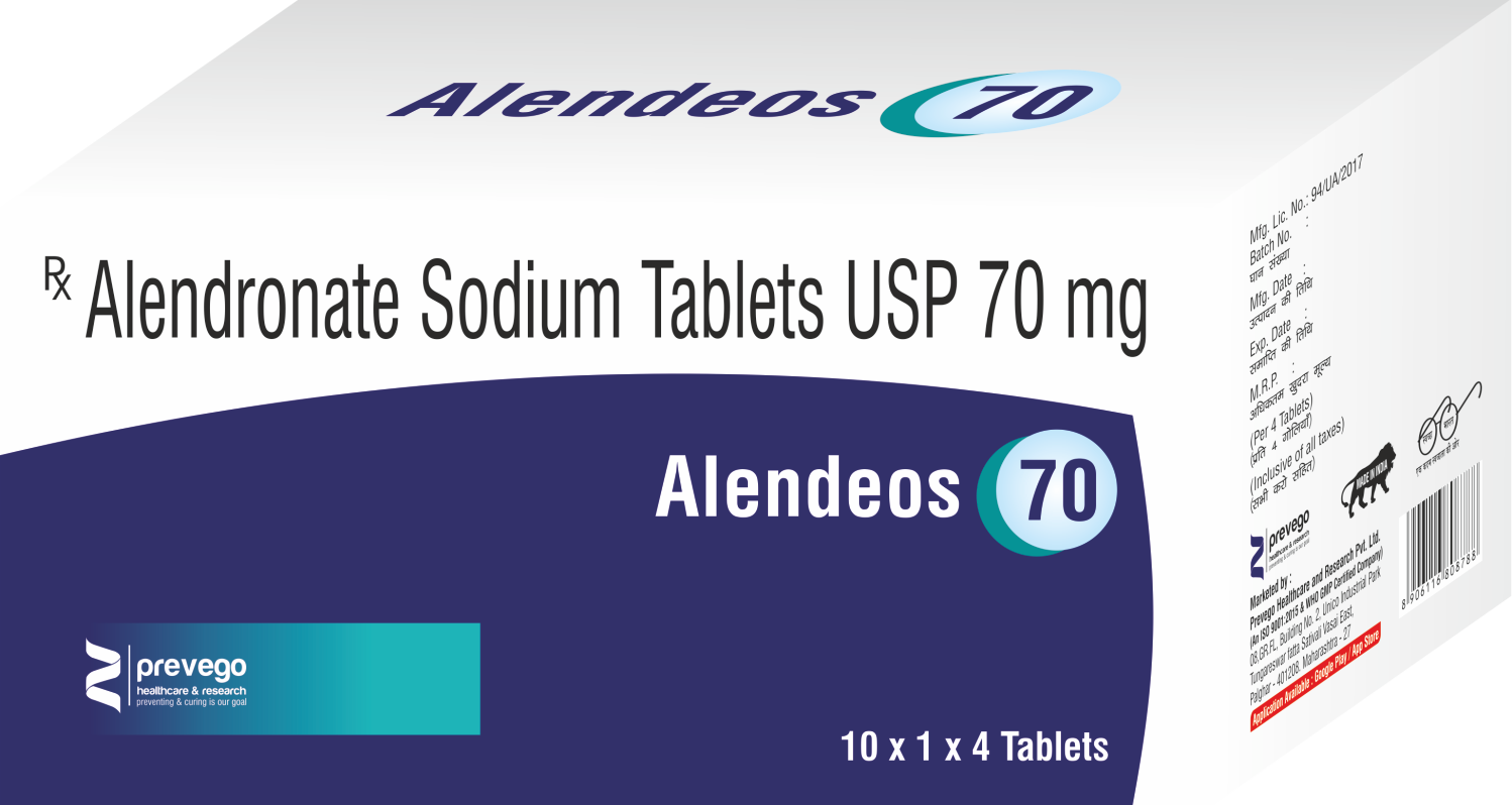 ALENDEOS 70mg Tablet is used to prevent or treat weakening of the bones (osteoporosis), caused by menopause or use of steroids), and treat Paget's disease of the bone. This medicine helps regulate bone remodeling by reducing bone turnover. It also alleviate bone pain, reduce fractures, and improve bone density.