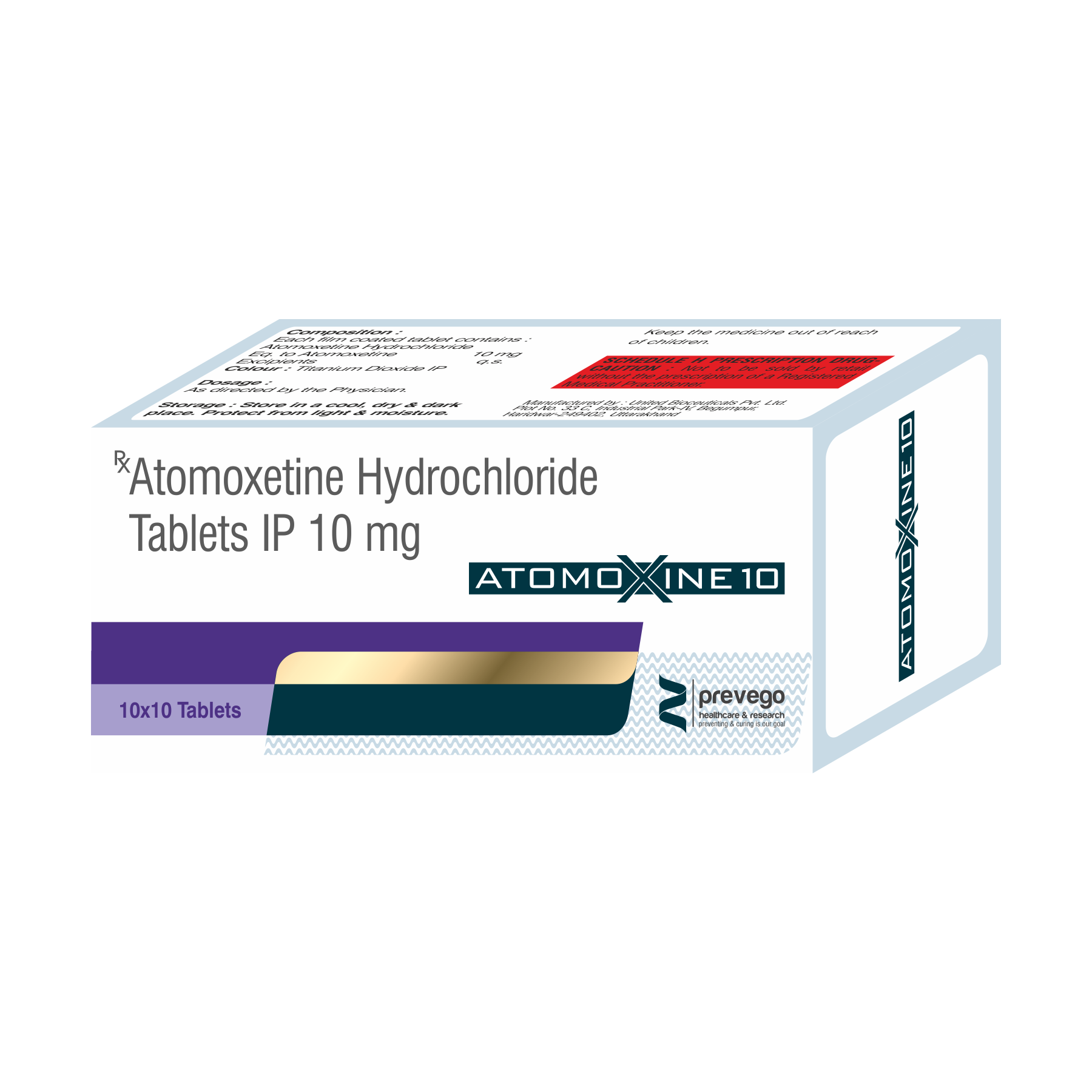 ATOMOXINE 10 Tablet is a medicine used in the treatment of attention deficit hyperactivity disorder (a behavioral disorder in children marked by poor concentration, hyperactivity, and learning difficulties). It helps to improve attention span, concentration and reduces impulsive behavior. ATOMOXINE 10 Tablet may be taken with or without food. It is advised to take this medicine at a fixed time each day to maintain a consistent level in the blood.