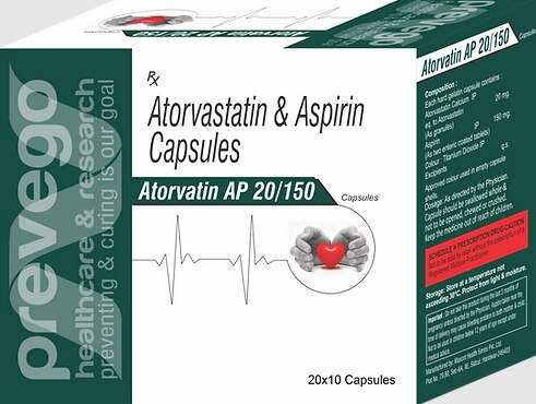 Atorvatin AP 20/150 Capsule is a combination of two medicines used to prevent heart attack and stroke. It lowers the "bad" cholesterol (LDL), triglycerides and raises the "good" cholesterol (HDL) levels in the body. Moreover, it also decreases the formation of blood clots.