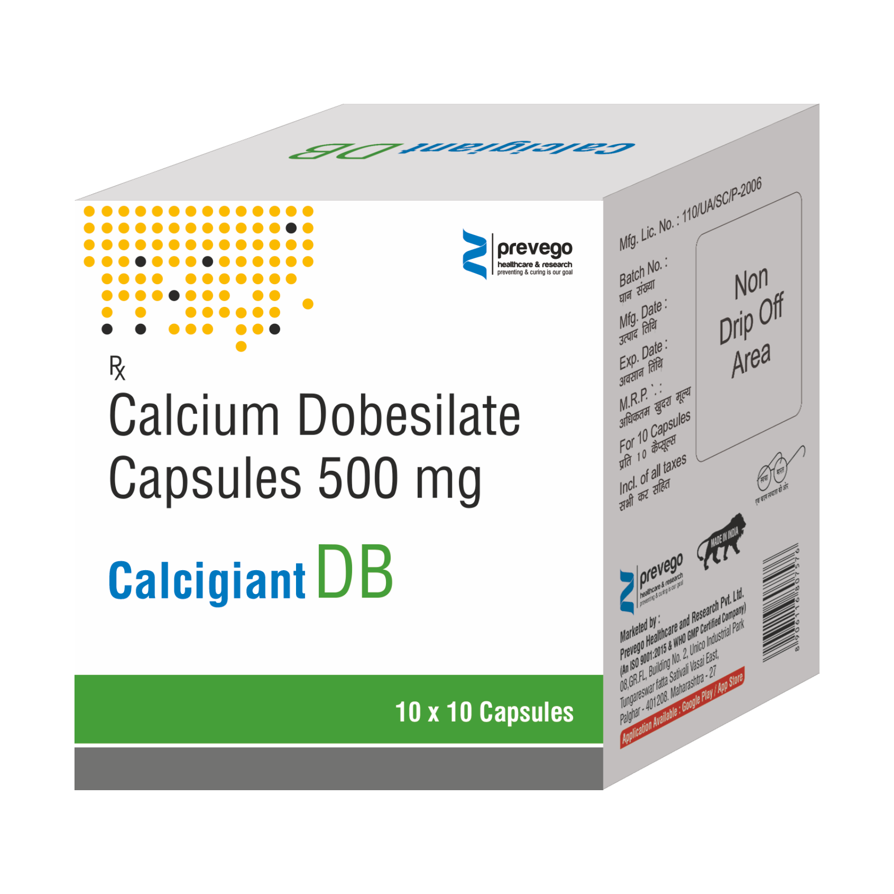 CALCIGIANT DB Capsule is a prescription medicine used to treat piles and varicose veins. This medicine decreases leakage and fragility of small vessels and improves blood flow.