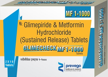 Each film coated bilayered tablets contains:- GLIMEPRIDE 1 MG + METFORMIN HYDROCHLORIDE (SUSTAINED RELEASE) 1000 MG SR.