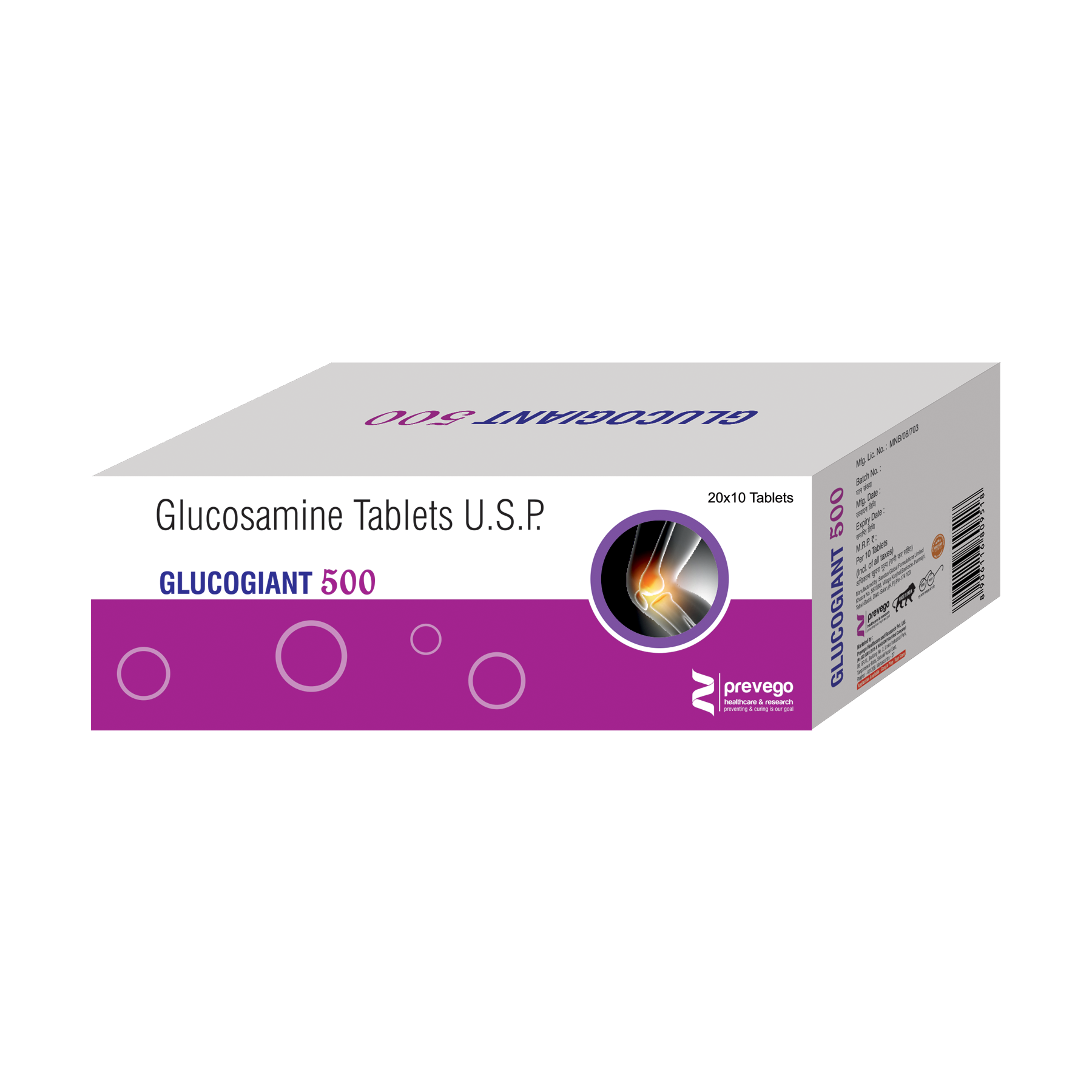 GLUCOGIANT 500mg Tablet is a medicine used in the treatment of osteoarthritis. It helps in the formation of cartilage and keeps the joints lubricated for better movement and flexibility. This way it relieves the pain and swelling in the joints.