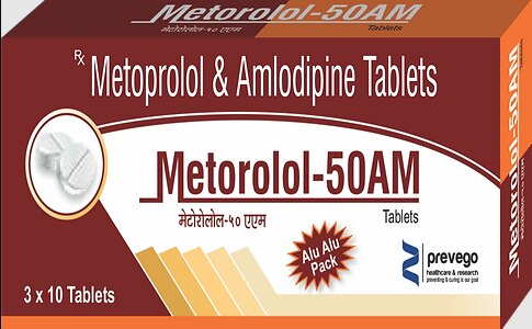 METOROLOL AM 50 Tablet PR contains two medicines, both of which help to control high blood pressure and heart rate. It is also used for heart-related chest pain, abnormal heart rhythms and chronic (long-term) heart failure.