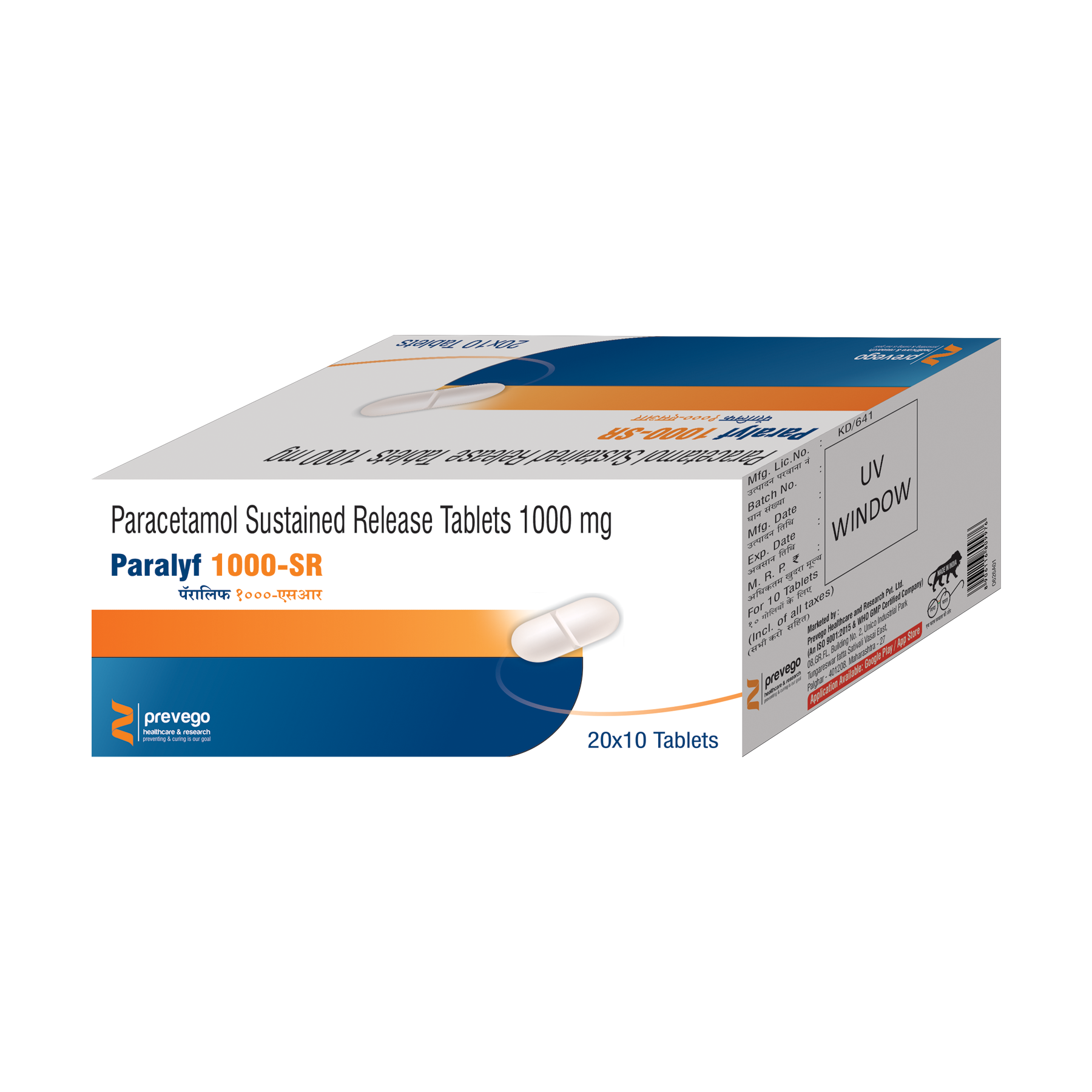 PARALYF 1000 SR Tablet is a medicine used in the treatment of pain and fever. It may also be used to treat many conditions such as headache, body ache, period pain, toothache, and cold. It blocks the release of certain chemical messengers that cause pain, inflammation, and fever.
