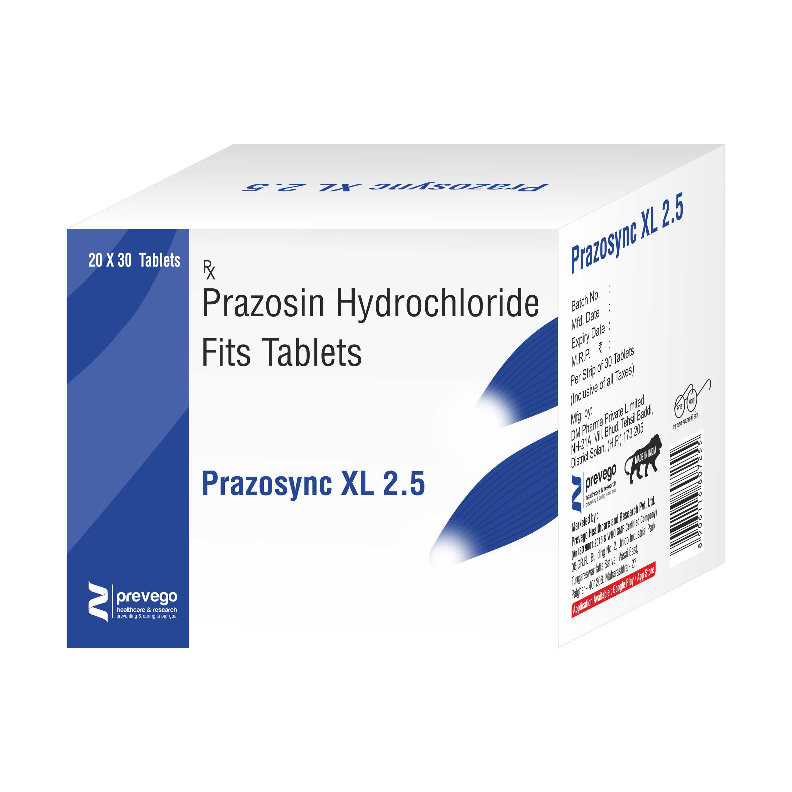 PRAZOSYNC XL 2.5 Tablet is used to treat high blood pressure and lower your risk of having a heart attack or stroke. It is also used in the treatment of heart failure and mild enlargement of the prostate gland.