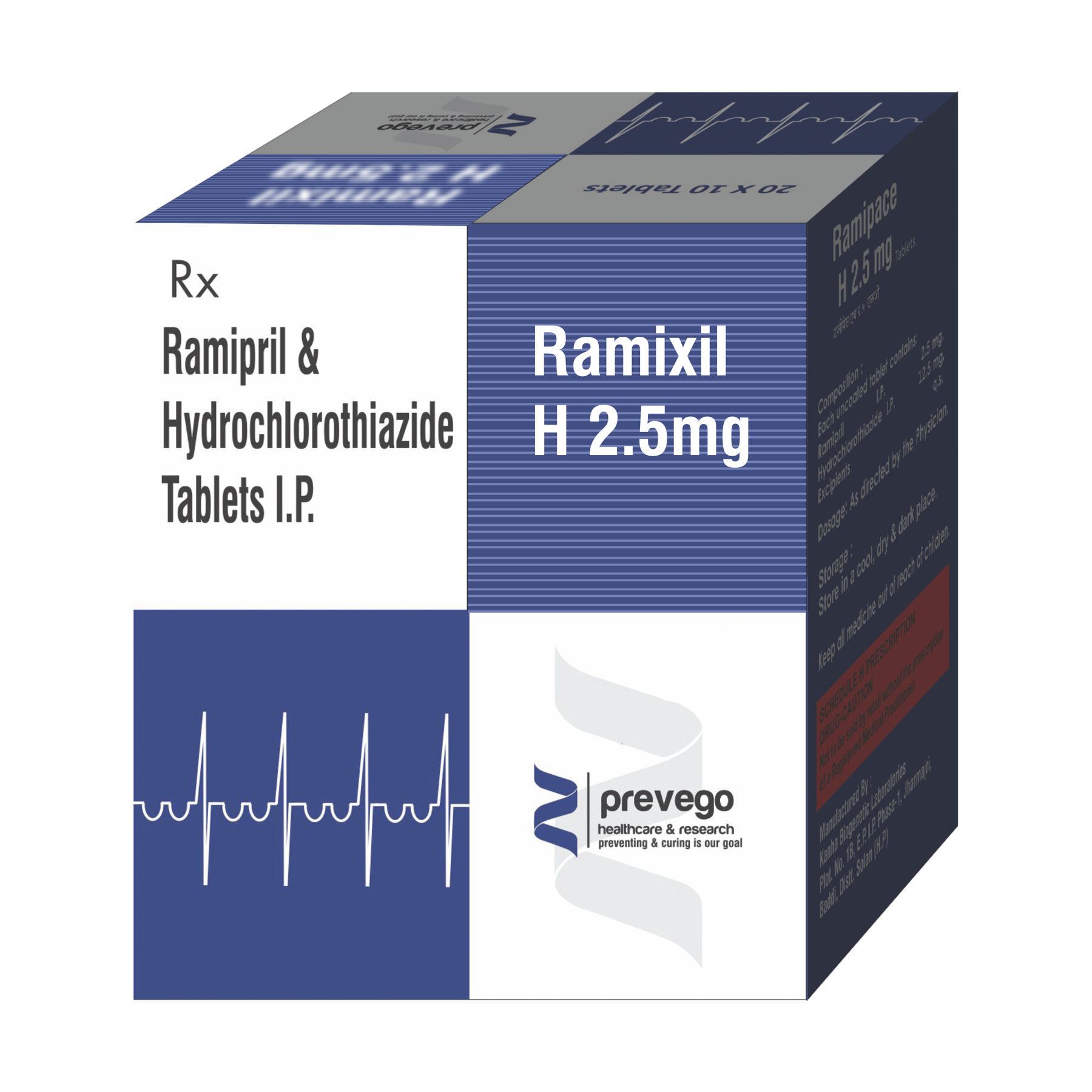 RAMIXIL H 2.5 Tablet is a medicine used to treat hypertension (high blood pressure). It is a combination of two medicines that helps to control blood pressure when a single medication is not effective. It helps to reduce the chances of any future heart attack and stroke.