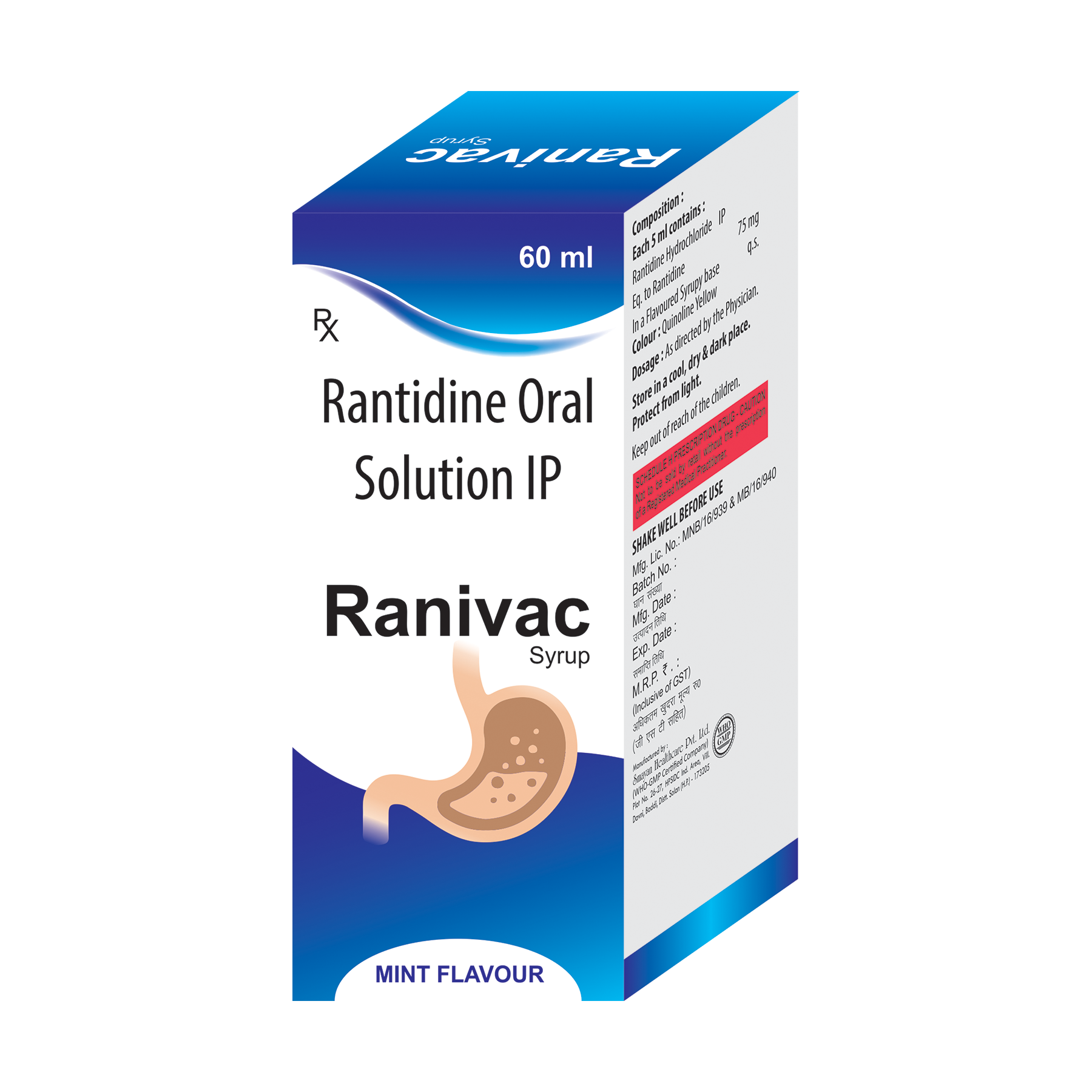 RANIVAC Syrup is a medicine that reduces the amount of acid your stomach makes. It is used to treat and prevent heartburn, indigestion, and other symptoms caused by too much acid in the stomach. It is also used to treat and prevent stomach ulcers, reflux disease, and some rarer conditions.